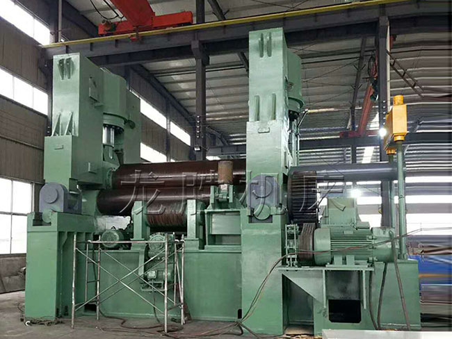 該機屬于液壓型三輥卷板機,用于常溫狀態下將各種容器用碳鋼、低合金鋼一次上料后不需調頭即完成板材端部預彎、卷圓和矯圓等工序。